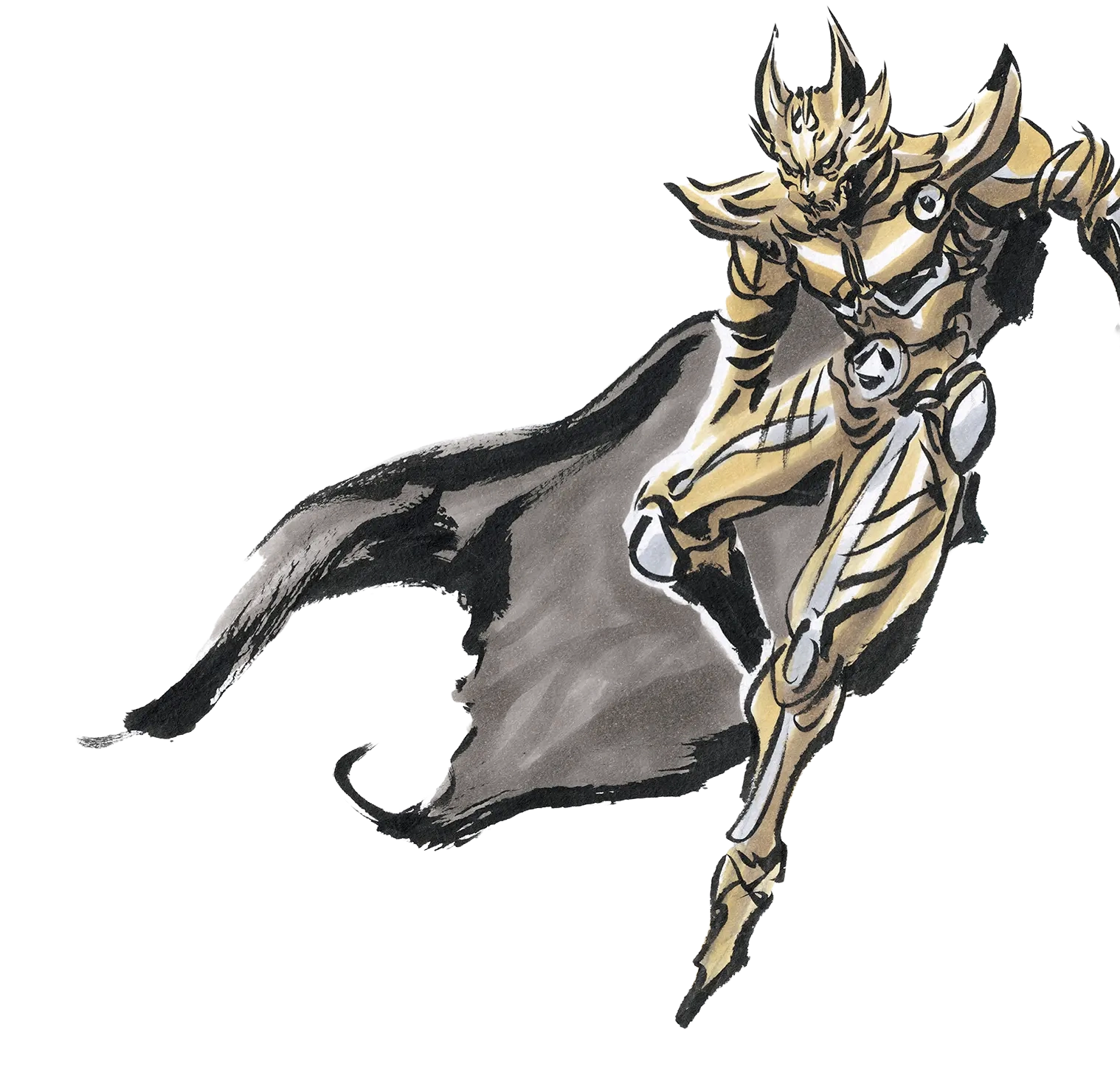 本展では『牙狼画』『牙狼<GARO>TAIGAアートブック』に収録された設定画やイラスト、制作過程で生まれた資料等の原画を展示いたします。「黄金騎士ガロ」が誕生した瞬間の1枚は勿論のこと、シリーズを重ねる中で常に新たなデザインや表現方法の追求を続けた雨宮慶太。その筆使いから生まれる鼓動を体感できる本展へ、ぜひご来場ください。